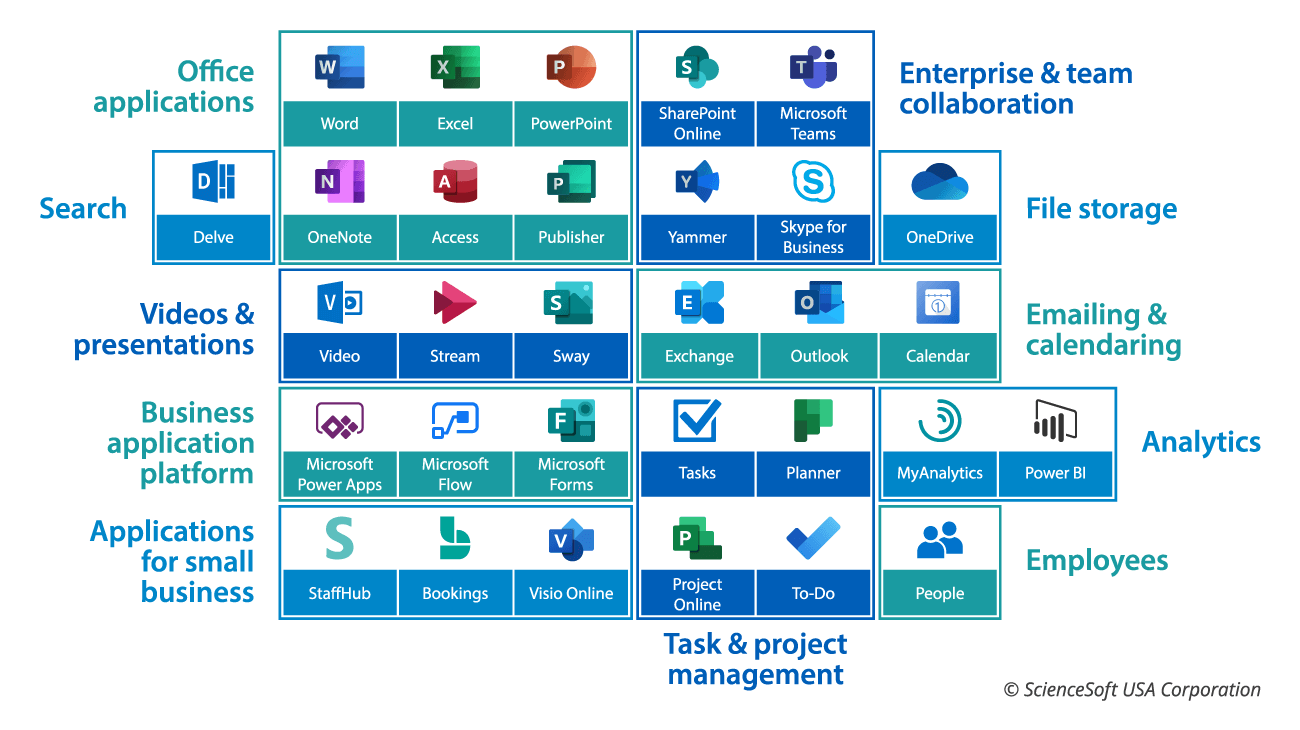 - Microsoft Teams – Chat, video conferencing, and collaboration.